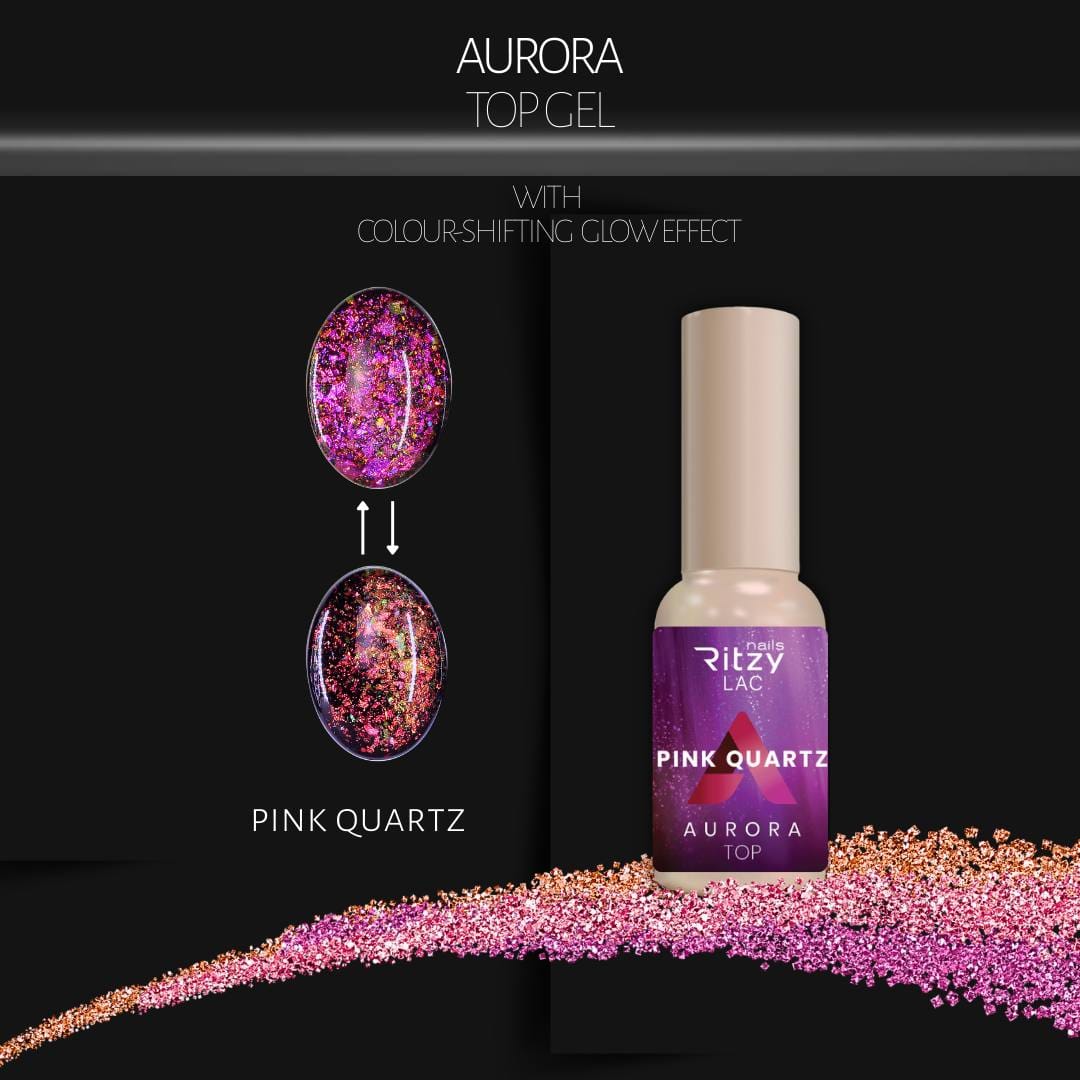 Aurora No Wipe Top Coat ustvarja edinstven, večdimenzionalen sijaj z nežnimi barvnimi prelivi, ki nohtom dodajo izjemen, svetlobno odbijajoč učinek.